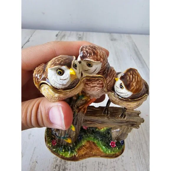 Kalifano owl bird trinket jewelry box gold unique fence post about 5-in tall by 4 inch by 2 in, overall in good condition, no significant problems If item is with box will be in pictures, getting what is pictured only.No batteries are included in items.Non smoking homeWe are a family run business with 3 little girls! We are building our own brand with them and hopefully you will join our journey!Thank you so much and have a wonderful day!Exclusive Elegance