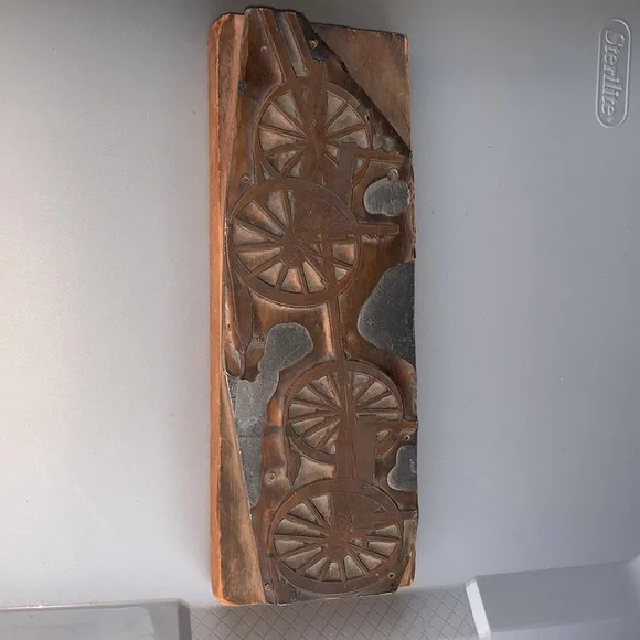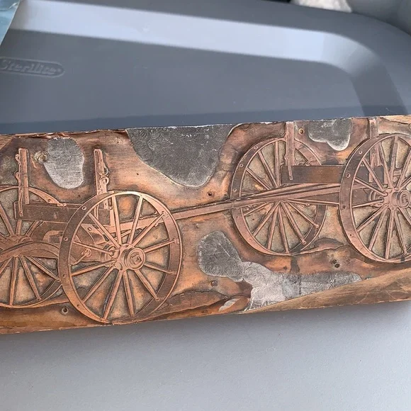10” printing press copper wagon. Very detailed. Missing some small nails. Excellent for repurposing. Antique from an Alaskan homestead estate!Very RARE!