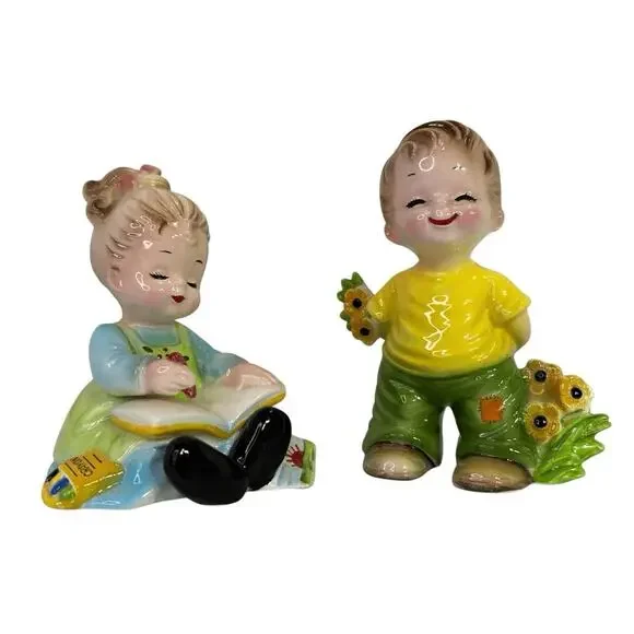 Note: We don’t see any visible chips, flaking, or damage to these figurines. If you need ANY additional photos please let us know.Add a touch of vintage charm to any room with these beautiful Josef Originals figurines. The multicolored porcelain pieces feature “happiness is flowers” & “happiness is new crayons”. The glossy finish and mid-20th-century style make it a perfect addition to any collection.These original pieces, signed by Josef, are 4.5 inches tall and the bundle weighs 7 oz. It was manufactured in Japan in the 1960s. Whether you´re celebrating an occasion or simply adding to your decor, this figurine is sure to bring a smile to your face.