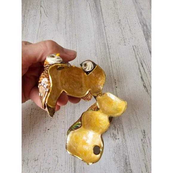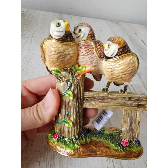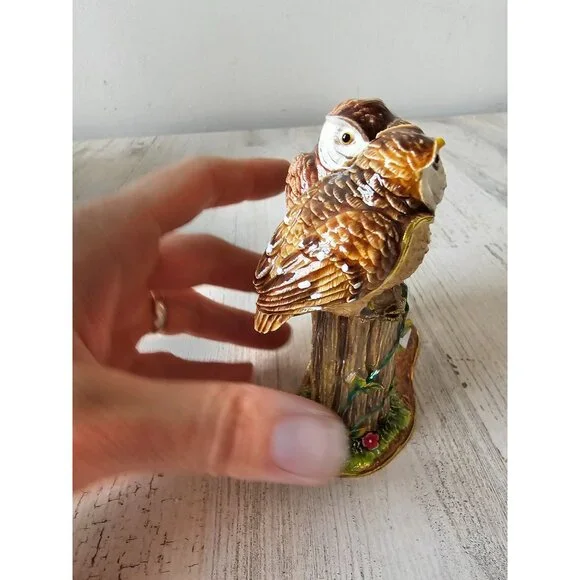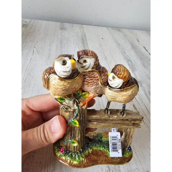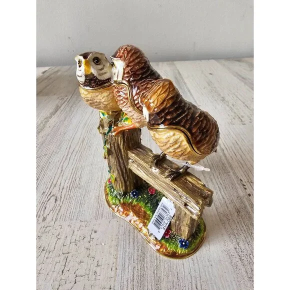Kalifano owl trinket jeweled rhinestone keepsake box unique stands 4.5 in tall by 4 in by 1.5 in, new with tags, no problems If item is with box will be in pictures, getting what...