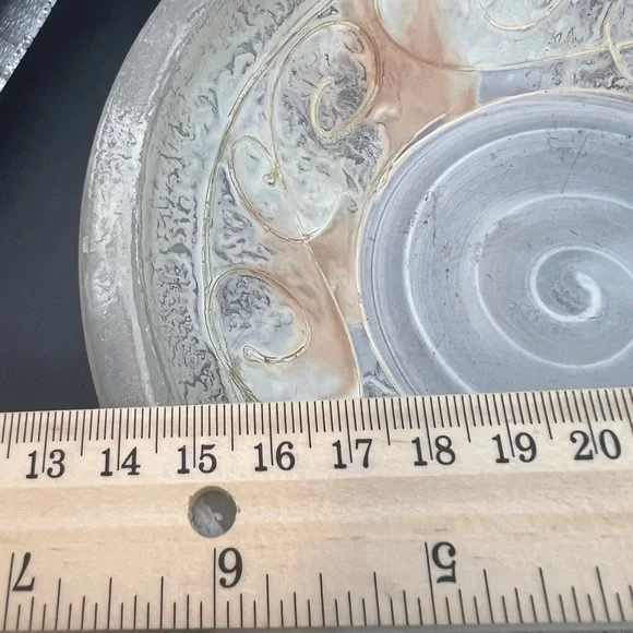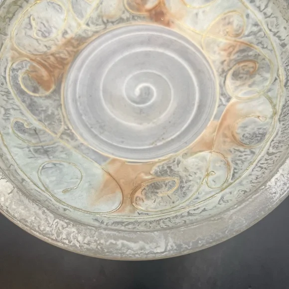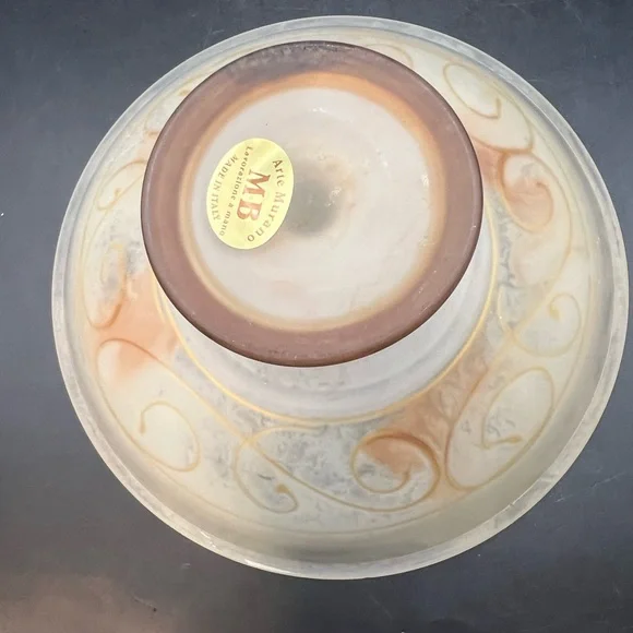 Murano candy dish ( has sticker )dish Enhance your home with this elegant swirl glass art piece. Its cream and brown hues add a touch of sophistication to any decor. Pre owned no...