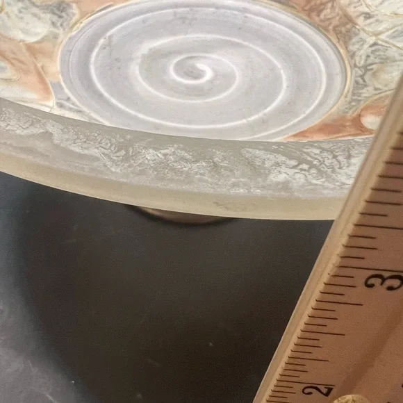 Murano candy dish ( has sticker )dish Enhance your home with this elegant swirl glass art piece. Its cream and brown hues add a touch of sophistication to any decor. Pre owned no chips or cracks