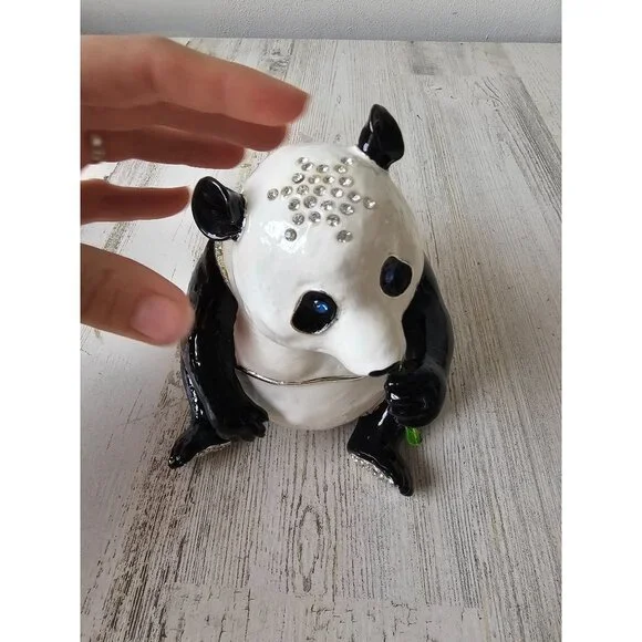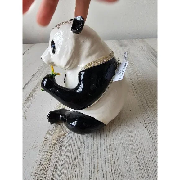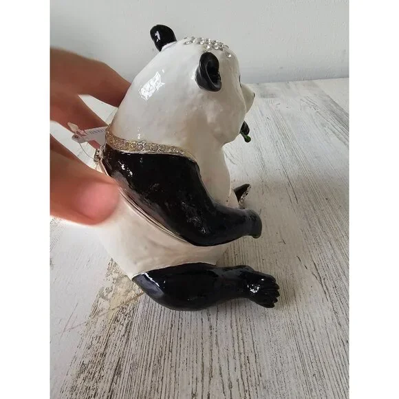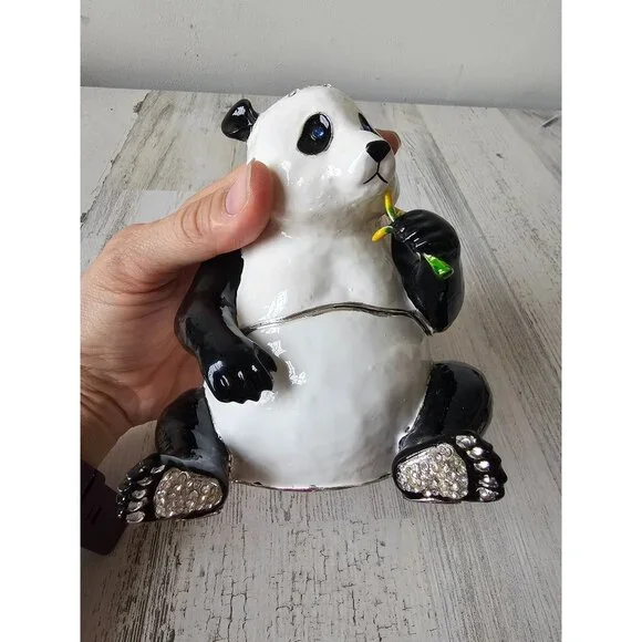 Kalifano large Panda trinket jewelry box keepsake rhinestone jeweled unique bear new stands about 5-in tall by 4 in by 5 in, no problems If item is with box will be in pictures,...