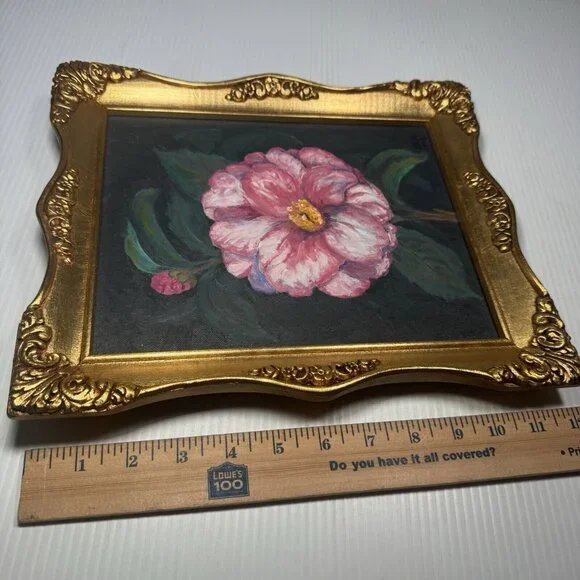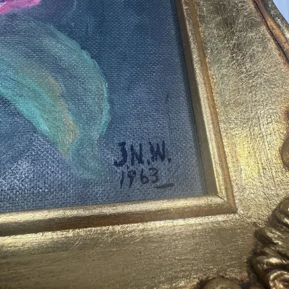 Jannie Nichols Wright (1963) Vintage Oil Painting Flower Pink/Purple Gold Frame