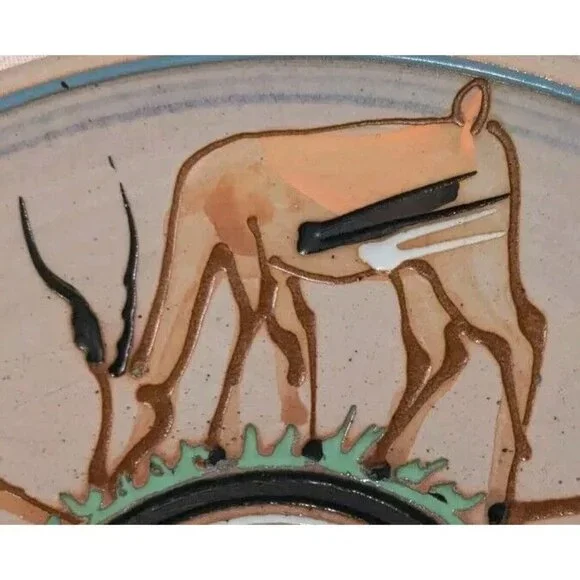 Donn Hedman Studio Pottery Platter Gazelle Stoneware Handpainted Deer Plate Vtg