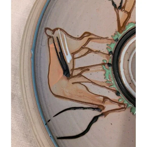 Vintage Donn Hedman Studio Pottery Platter.Painted Gazelles surrounding a swirl in the middle.Stoneware.Hand painted.Decorative ceramic art plate.Approximate diameter is 10...