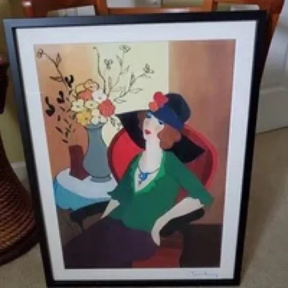 Happy Recollection" by Itzchak Tarkay, New, unframed. Measure @ 19 x 25 inches with white edge.Seriolithograph in color on archival appear. Signed in the plate. Art only measures 22 3/4 x 16 1/2. It is not framed, photo with frame is just an example of how it will look framed.There is @ 1 inch tear on the bottom left corner which is taped on the back so not to noticeable and may be hidden when framed. There are 2 white spots on bottom left corner. This is new. Will be shipped rolled up. #T1