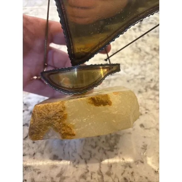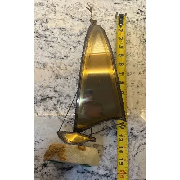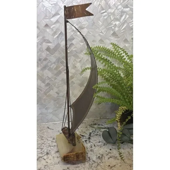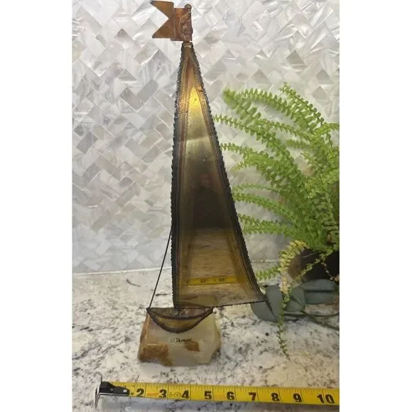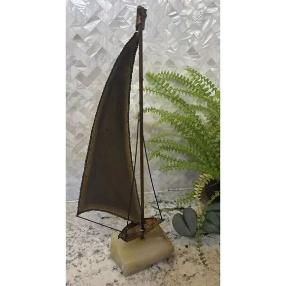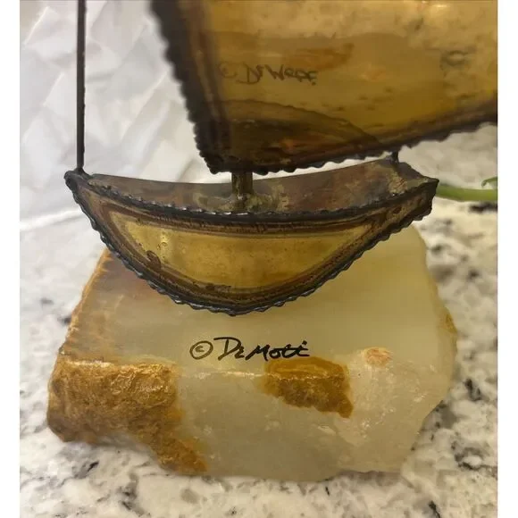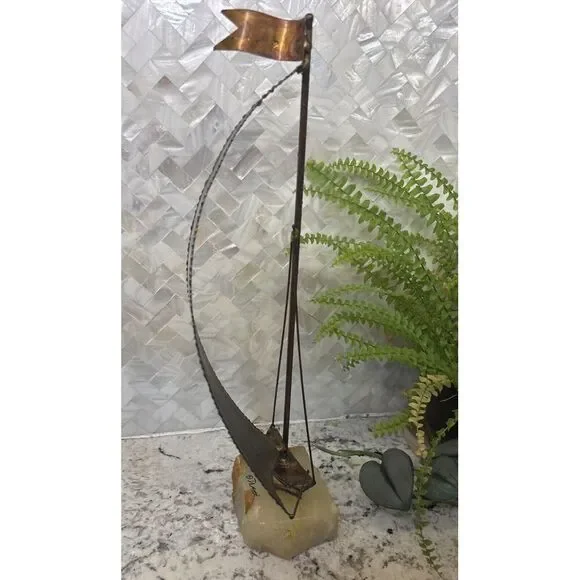 Handcrafted John DeMott‎ Brass Sailboat on Onyx? Base Nautical Sculpture Ocean