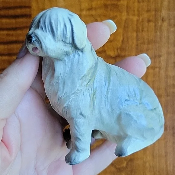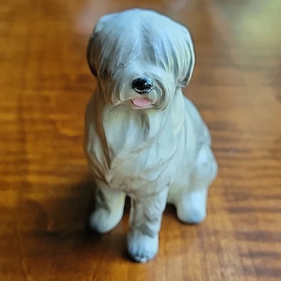 Charming ceramic sheepdog figurine in gray and white. Perfect for collectors.Beautifully detailed pottery with bisque finish1940´s Monrovia Hagen-Ranaker Sticker still...