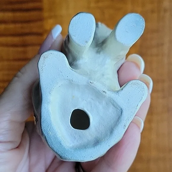 Charming ceramic sheepdog figurine in gray and white. Perfect for collectors.Beautifully detailed pottery with bisque finish1940´s Monrovia Hagen-Ranaker Sticker still present but has been wornAdorable little vintage piece for any OES lover or dog collector!3.25 x 3"Excellent vintage condition; tiny chip on one paw as shownCheck my closet for other unique pieces from our 1752 Dutch barn home, and save 25% or more when you bundle.