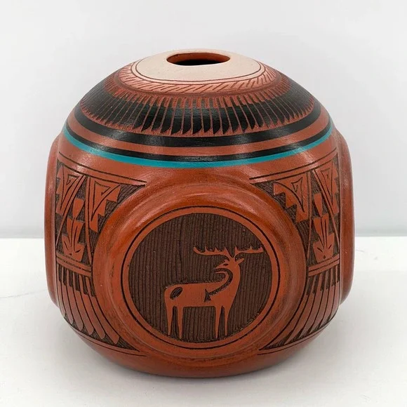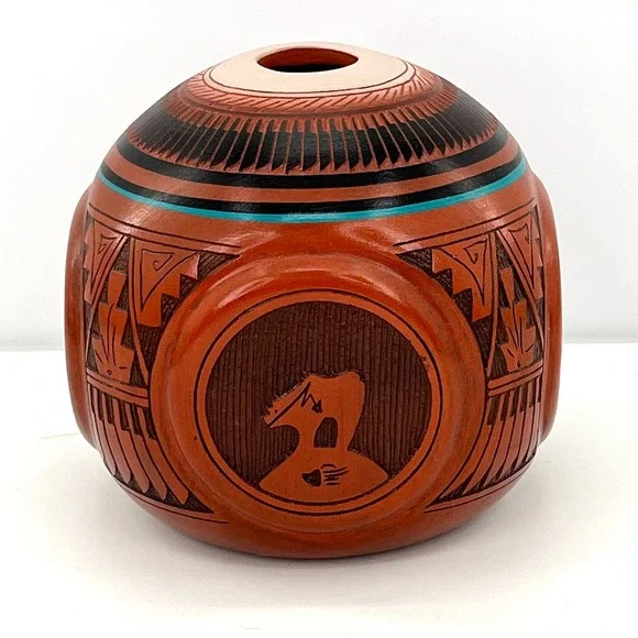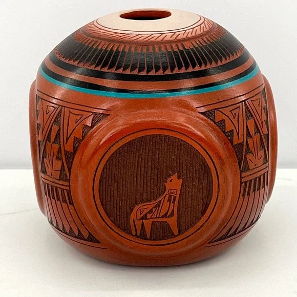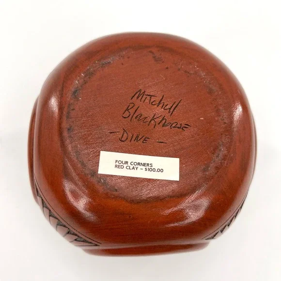 Mitchell Blackhorse Navajo four corners red clay pottery vase sculpture