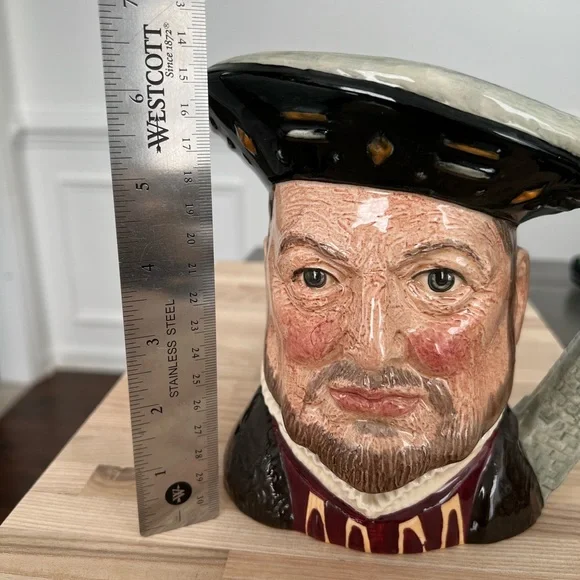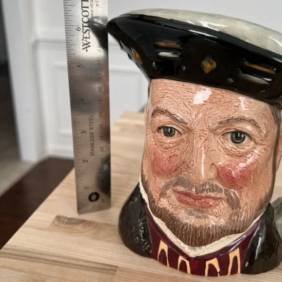 Henry VIII Toby Mug Large 6 1/2” D6642 Rare Vintage.This beautifully detailed mug is from a private collection and is in excellent overall condition, with no chips, cracks, or signs of use.Hand made and hand painted in England between 1955-1991.Truly a gorgeous collector’s piece!Measures approximately 6 1/2” tall by 7 1/4” wide.No box.From a smoke free, pet free home.Please check out my other listings for more and other Toby mugs and collectibles!Bundle and save!