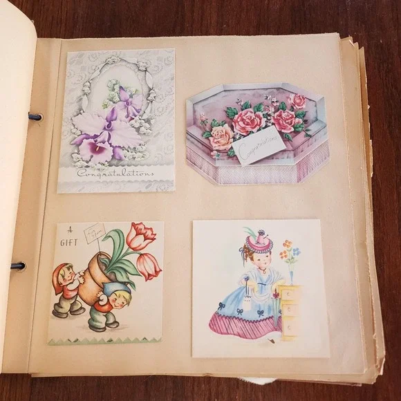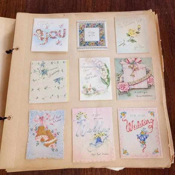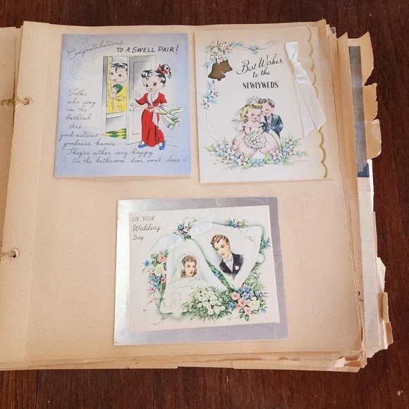 1950s? Vintage Scrapbook Cards Photos Memorabilia American Wedding Honeymoon