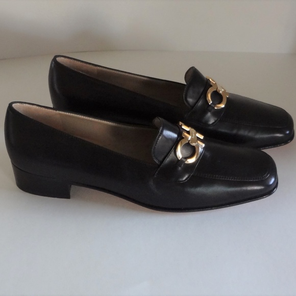 Classic Ferragamo black FOREVER Loafer with gold logo buckles. Never worn!No dust bag but in original box.