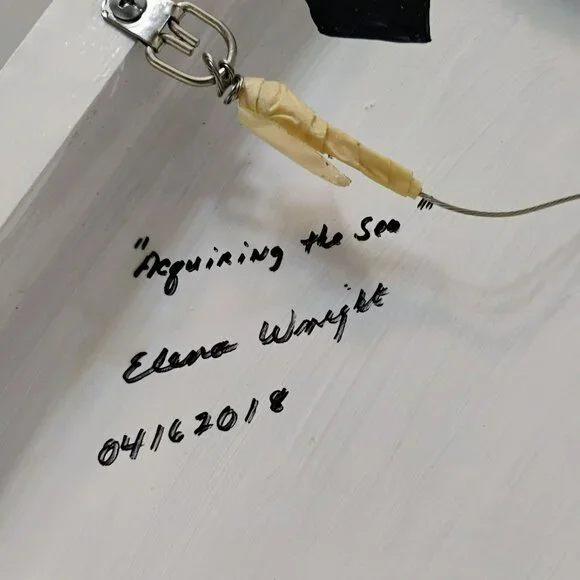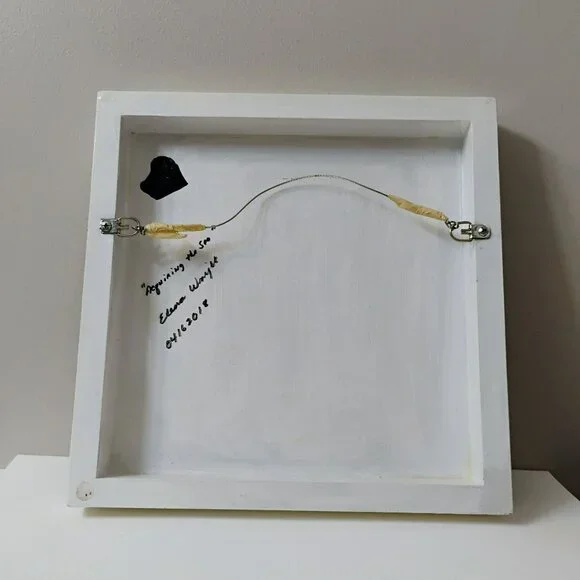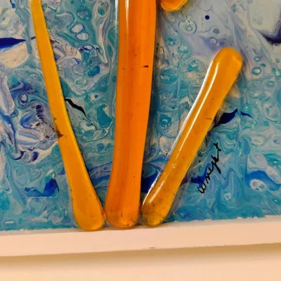 This original fused glass collage artwork titled "Acquiring The Sea" features a vibrant mix of abstract fish and coral, offering a unique centerpiece for any space.• Measures approximately 12" x 12"• Ready-to-hang with durable wire backing• Signed by artist Eleanor Wright• Dated 04/16/2018• One-of-a-kind handmade pieceElena Wright is a well-known glass artist in the Wilmington, North Carolina area. Her glass collage works are painted with acrylics, embellished with fused and cut glass components and foundobjects and finished with art resin.