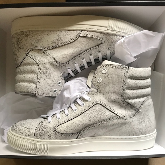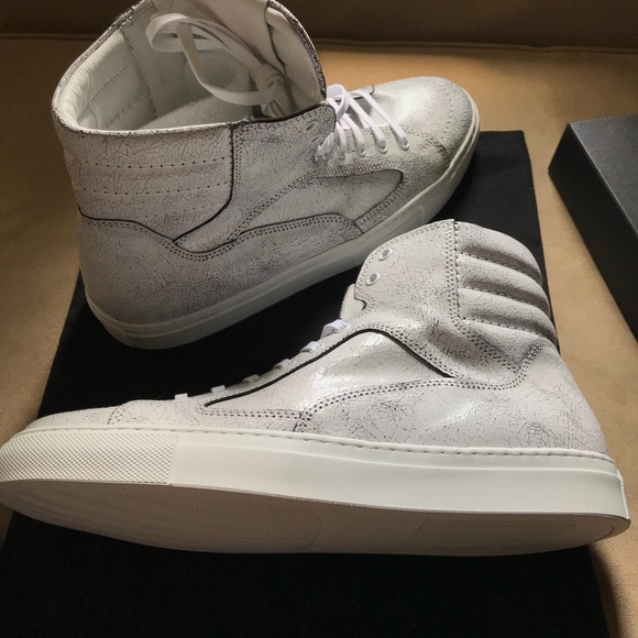 Gorgeous cracked leather high tops, beautiful quality and a fresh summer look. Brand new in original box with extra laces and dust bag, never been on feet. Men’s size 8, women’s size 10. Selling for half the original price! I own a pair in my size and I’m in LOVE with them. Purchased new from Neiman Marcus