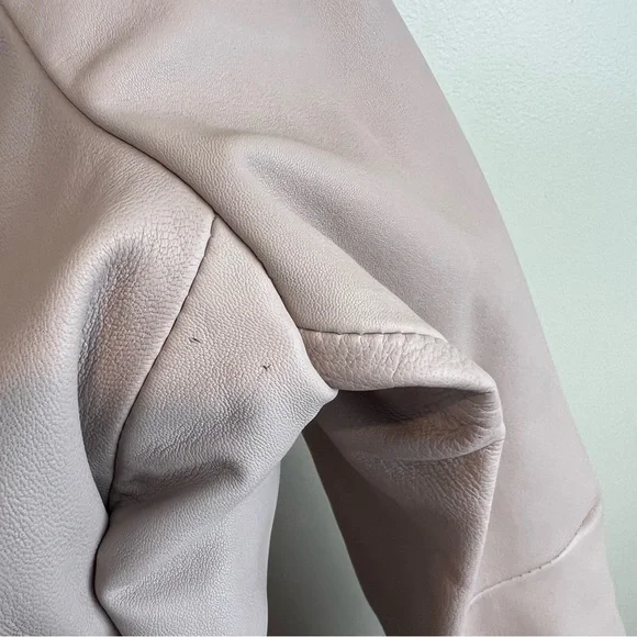 NEW ALLSAINTS Dalby Leather Biker Jacket in Nude Pink, Size 2. New without the tags. Some minor imperfections on sleeve and 2 tiny holes where the tag was placed by the armpit...
