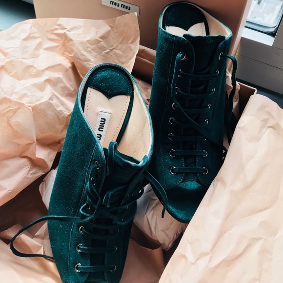 Brand new Miu Miu heels from Barney’s. Size 37.5 Comes with box Green suede lace upCalzature donna heel color bottigliaRetail $930