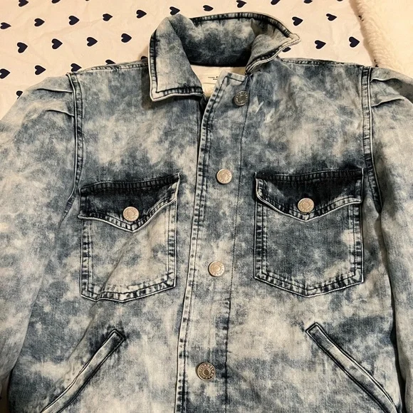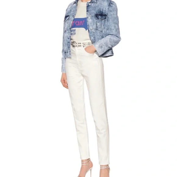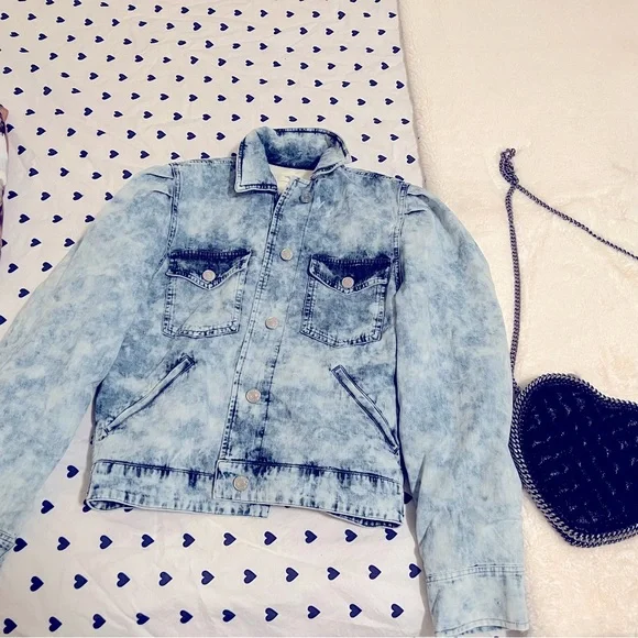 Statement puffed sleeves and a vintage acid wash define the Iolinea jean jacket from Isabel Marant, Étoile. Cut from structured cotton denim in a faded blue wash, it is complete...