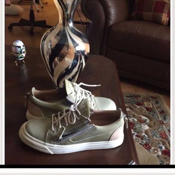 Nude and grey Giuseppe sneakers grey part looks green I´ve worn them with Army fatigue and got so many compliments! Condition 9/10 no sign of wear at all! Does come with dust bag and authenticity card! Original price $495.00 asking price is $235.00 well worth it, if bought and item is not described as is feel free to return