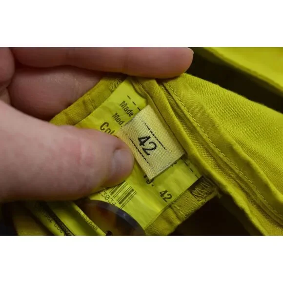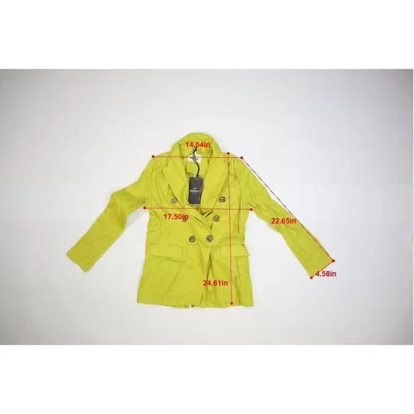 Mason´s Caroline Double Breasted Blazer Linen Blend Acid Yellow Italian 42 US 6$558 Retail. Womens Size US 6 Italian 4269% Linen 29% Cotton 2% ElastaneMason´s woman double-breasted blazer in linen and cotton, Caroline style. This summer blazer is light and elegant and is the versatile piece for any occasion. This feminine jacket is part of the Summer City Suit line and in fact can be combined with a Mason´s chino in the same fabric and color for a perfect spring outfit suitable both for the office and also for leisure time.Composition: 69% Linen, 29% Cotton, 2% ElastaneDouble-breastedTwo flap pocketsM of Mason’s rivetWhy Shop with US?Customer Service is our #1 PriorityExcellent PricingExcellent FeedbackQuality AssuranceFast ShippingFeedbackIf you are completely satisfied with your purchase please leave us positive feedback. If there is an issue with your order, please understand we are human and we do make mistakes. Please send us a message and give us a chance to resolve before returning or opening a dispute with .Shipping PolicyWe will ship almost all items within 1 business day. All items ship from Kansas City MO and take 2-5 days depending on shipping service. On rare occasion, USPS or FedEx may delay a package. Please understand this is out of our control.If you order/pay before 12 PM CST we will try our best to get your package out same day.If you would like an express delivery option, please message us before purchasing, we