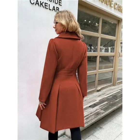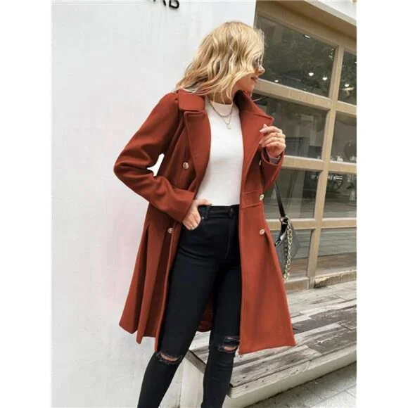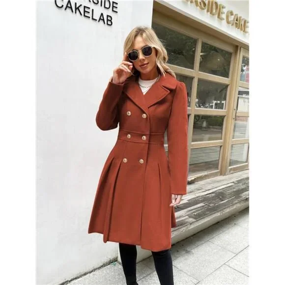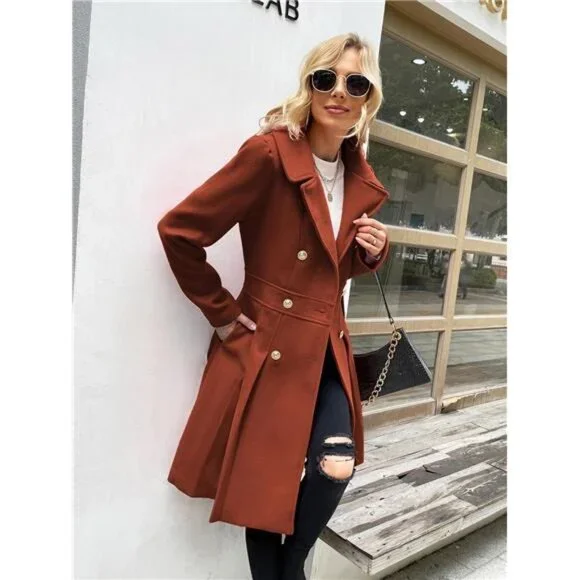 Women´s Trench Coat Notch Lapel Double Breasted Thick A Line Pea Coats Jacket