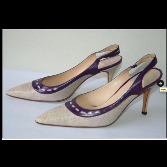 Manolo Blahnik purple lizard trim slingbacks,s38.5