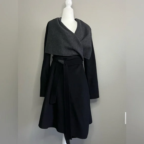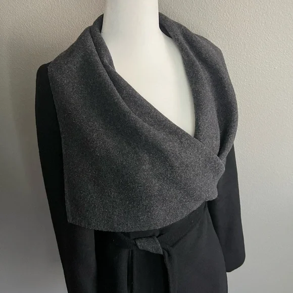 Excellent condition! Wool coat gray and black wrap coat, unlined Nearly no signs of wear, no pilling Size XSmallNo ? Use code MLIS959 for $10 credit towards a purchase