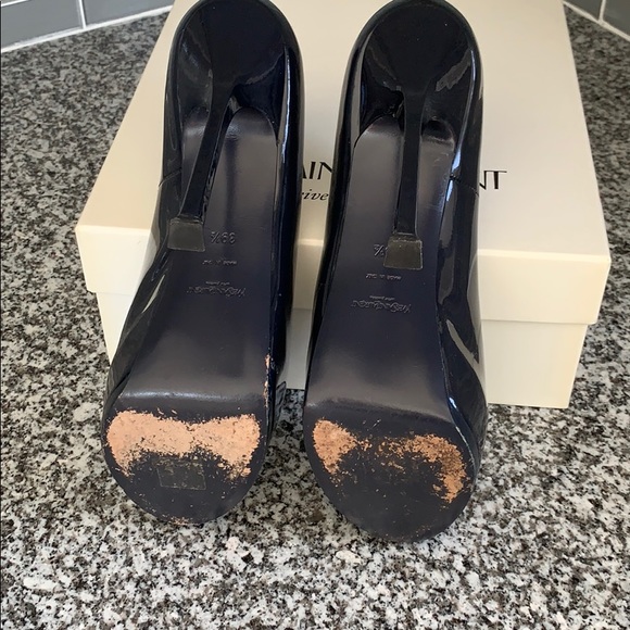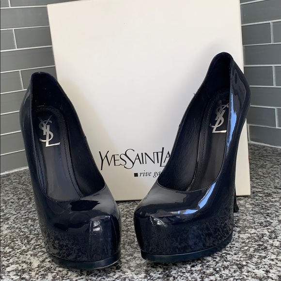 *YSL patent leather tribute pump*Pre-owned *Navy Blue *Tribute style very comfy*Small chip to right side pump