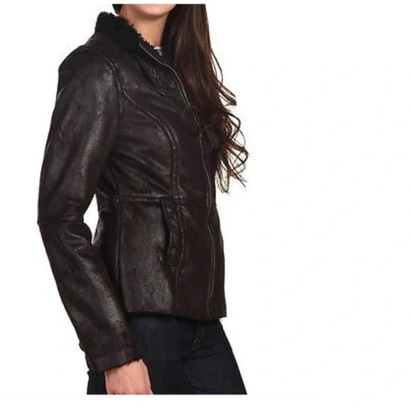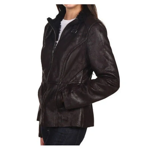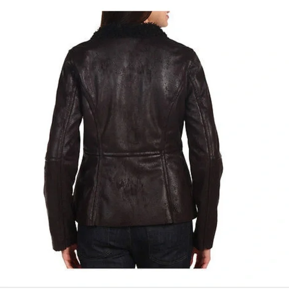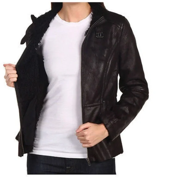 Women´s DKNY Jeans Missy Faux Shearling Bomber Style Jacket Exterior and Interior Shearling lining is super soft to the touchBlackSize L A feminine take on the classic bomber...