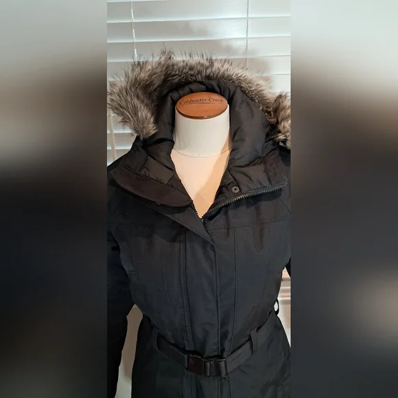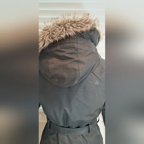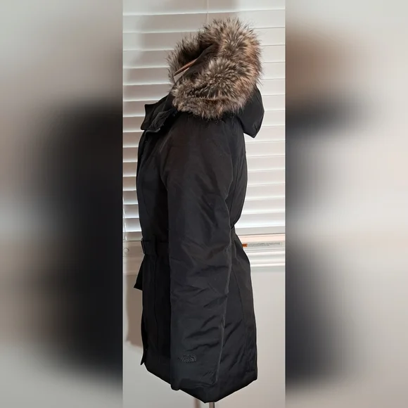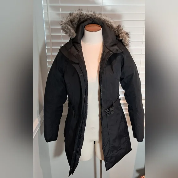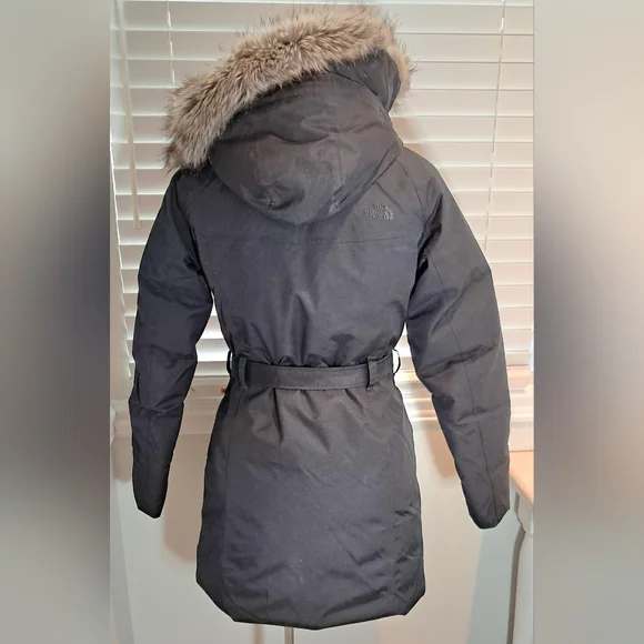 North Face Like New Worn OnceSize SmallParka StyleBrooklyn DownBeltedHood with Faux FurWinter JacketBlackZip Closure with Button Snap Closure over Zipper2 Front Side Zip Pockets Please use measurements for sizing Armpit to Armpit 38 inchesWaist 32 inchesHip 38 inchesLength 32 inches from top of Shoulder to Bottom of Jacket Bundle and Save 1224AK