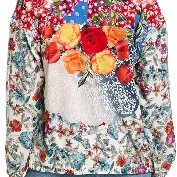 Crafted from a breathable fabric with added stretch, this Tango Sporty Zip Jacket is effortlessly accented by contrasting colors and patterns. This jacket boasts a zip front, long sleeves, a collar, and two rich floral patterns with both dainty and large motifs. Style this jacket with a vest and printed joggers for a vibrant workout-ready ensemble. 44% Recycled Polyester 44% Polyester 12% Elastane Zip Closure Model Height: 5´9" Model is wearing a size Small Measurements for size Medium: Bust - 43 1/2", Length - 26 1/2" Machine wash cold with like colors. Do not bleach. Tumble dryFrom major upscale department store Pet and smoke free home