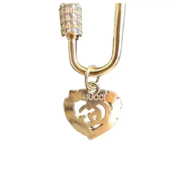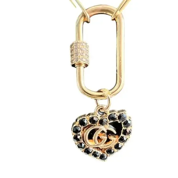 Gold & Black Crystal Heart Pendant with Paper Clip Carabiner Necklace (GGXX030)Ready for gifting!IncludesGucci Gold & Black Crystal Heart GG Charm PendantGold Plated over Stainless Silver Carabiner Gold & CZ Clasp Chain 18" adjustable necklaceGucci Box and Dust bag
