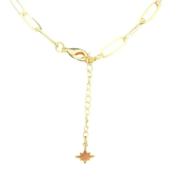 Gold & Black Heart Pendant with Paper Clip Carabiner Necklace (GGXX030)