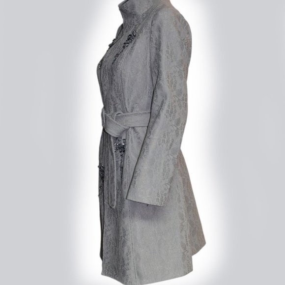 Both elegant and glamorous, this coat features a lace fabric design and is embellished with crystal accents.60% Silk/40% PolyesterDry Clean OnlyImported