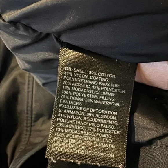 Only wore 1 season, paid $450.Color Black. Just picked up from dry cleaners. Super warm and roomy. Detachable faux fur. Down fowl feathers