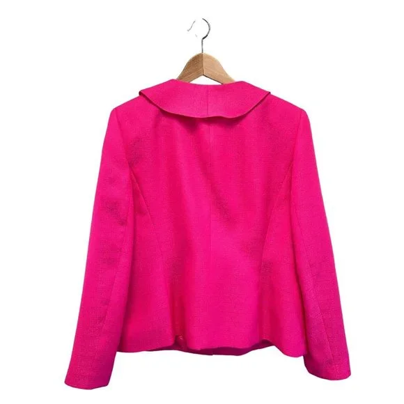 Le Suit Rose Garden Carnation Barbiecore Pink Ruffle Skirt Suit Outfit 12 NWTReally gorgeous.Button front blazer with ruffle down the front, matching skirt with flat waist and...