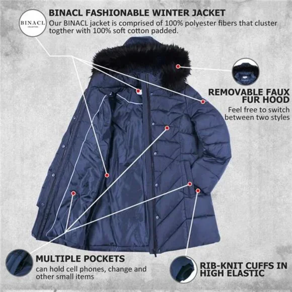 Double styles: Classic Hooded Style: Removable hooded with faux fur trim, excellent for colder winter days.The hooded with faux fur trim is easy to attach and detach, and the faux...