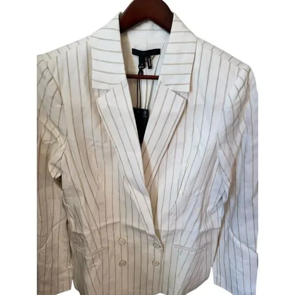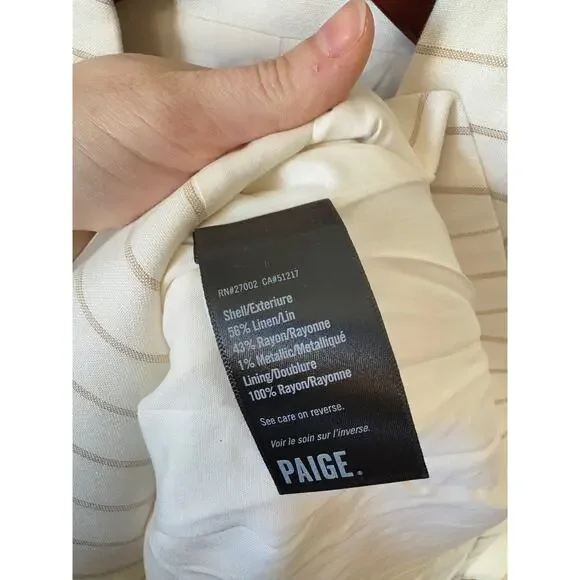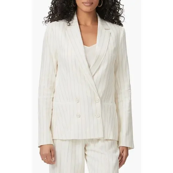 PAIGE NWT Rosette Stripe Double Breasted Linen Blend Blazer Size 8 $379 MSRPBrand New with tags. Never worn. Metallic accents elevate this polished double-breasted blazer covered...