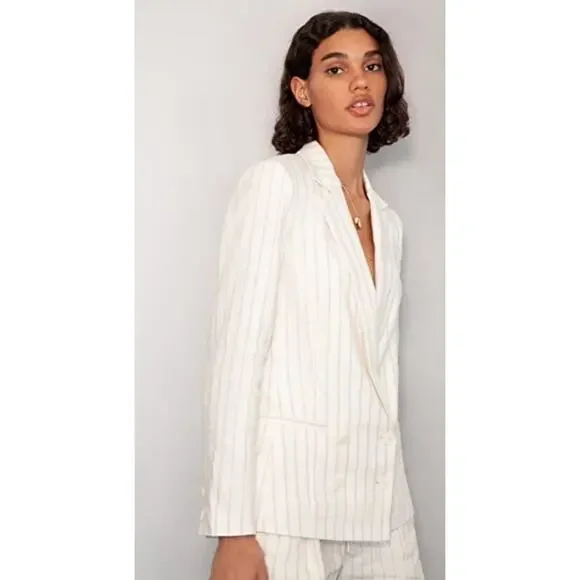 PAIGE NWT Rosette Striped Double Breasted Linen Blend Blazer Size 8 $379 MSRP