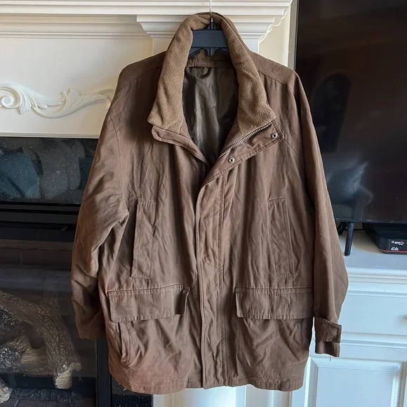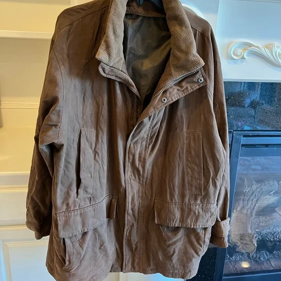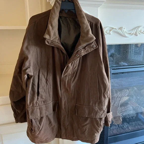 Coat Brown Jacket Mens Large Utility Suede Like
