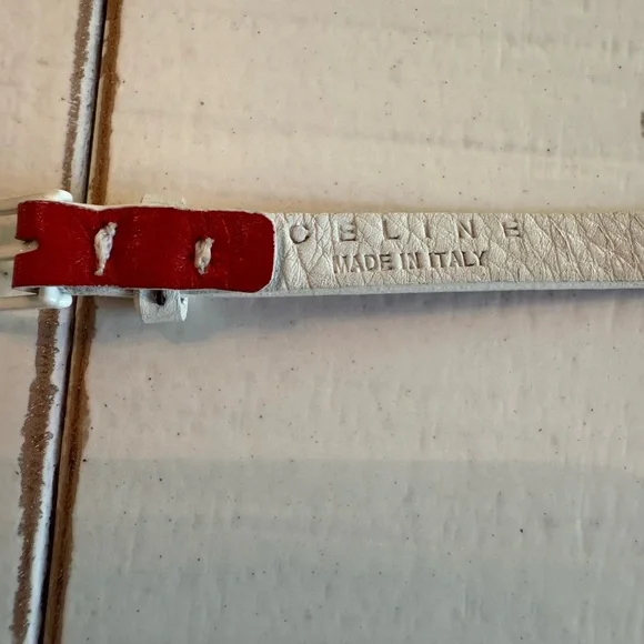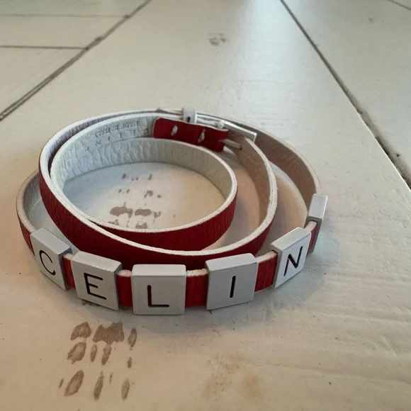 Leather Celine wrap bracelet In excellent pre loved condition. No signs of wear.Orange and whiteNo boxNo dustbagTags:luxury, high end, designer, accessories, jewelry