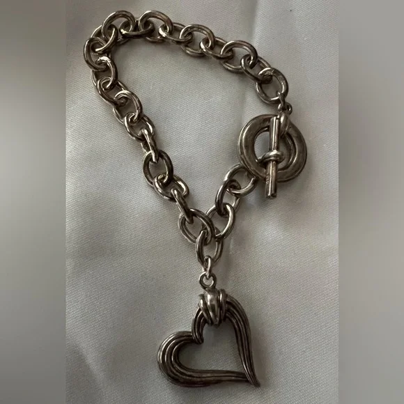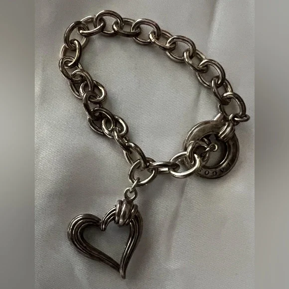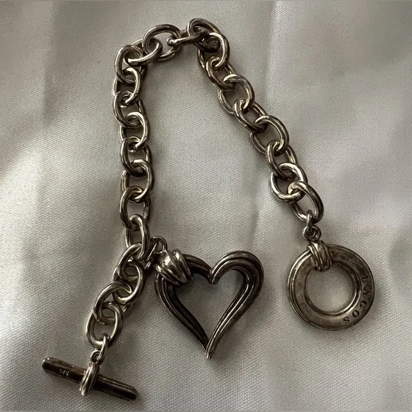 Gorgeous.Like new worn briefly.No notable flaws:smoke/ pet free home.Item pictured is exact item you will receive.Guaranteed authentic.Large Open Heart Charm, Signature Cable Link ChainSterling Silver Braceletby LAGOST-Bar closureBracelet Weight: ~ 1.2oz / 34gBracelet Length: ~ 7"Hallmark: 925 LAGOS. No dustbag. Bracelet only. No flaws. Worn only one time. Just doesn’t get the use it should! Final sale: guaranteed authentic