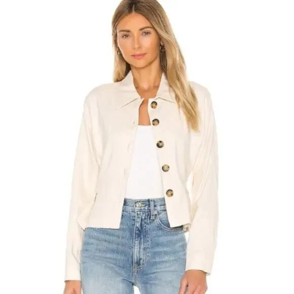 LPA Easton Jacket in Oatmeal Linen NWT Size Small55% linen, 42% rayon, 3% elastane. Hand wash cold. Front button closures. Buttoned cuffs. Pleated fabric at waist. Imported. Sold...