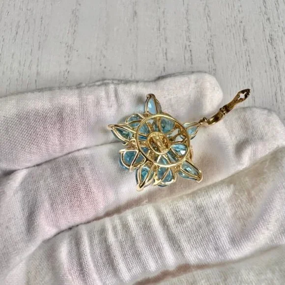 ***Please be sure to inspect pictures and descriptions carefully as I do not acceptStunning Blue Topaz cluster necklaces with Diamonds. 14K KN 585 Stamped. 1.5 inches by 1...