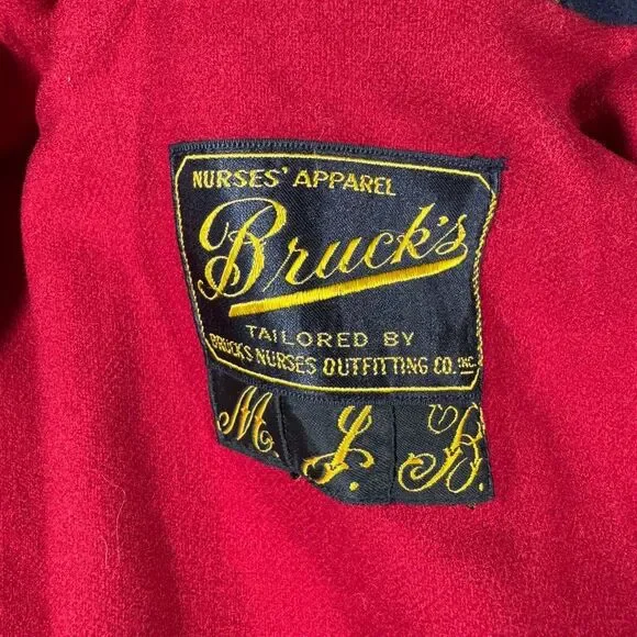 Vintage 40s 50s Bruck´s Nurses Cape Wool Coat One Size Navy & Red Gold Buttons