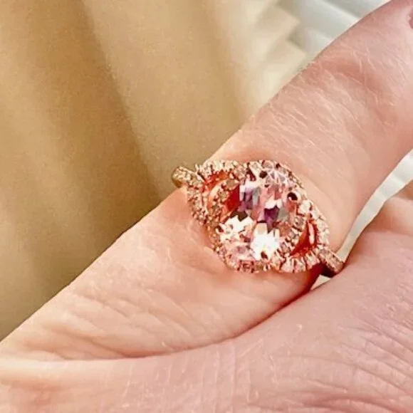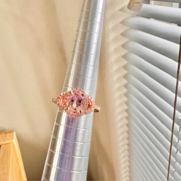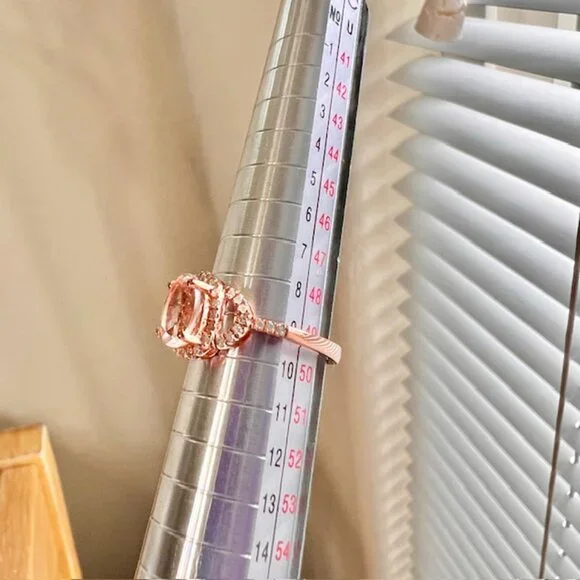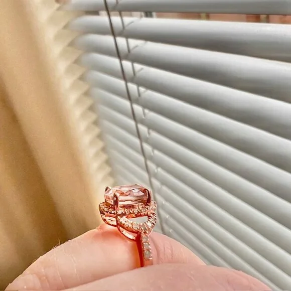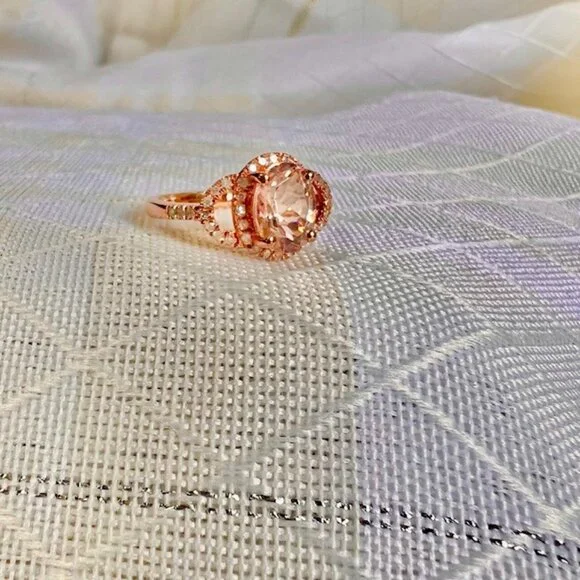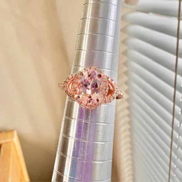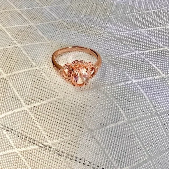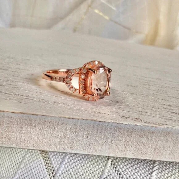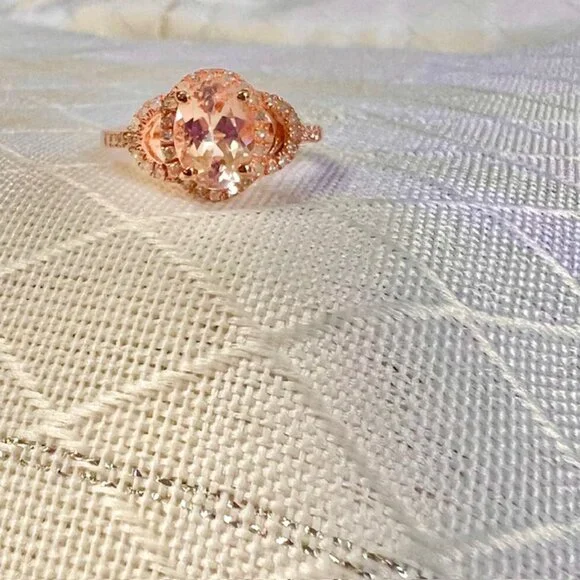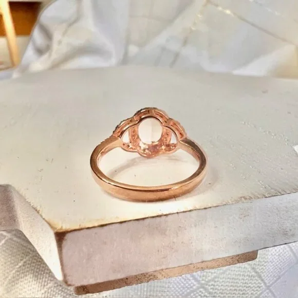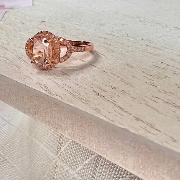 Rose Gold Vermeil Morganite Ring 18K Gold Plated Sterling, Diamonds Size 5