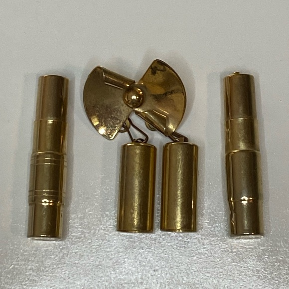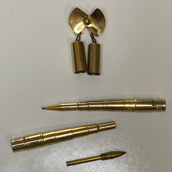 Amazing piece of roaring 1900’s history this is a vintage sweater pin with telescoping ink pen and lead pencil that are collapsible. The writing utensils are held in a canister...