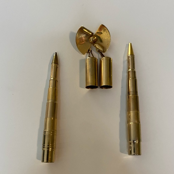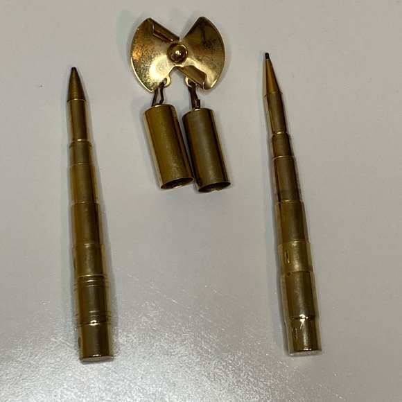 Vintage 40’s Collapsible Pen and Pencil Bow Brooch Pin Rare Metal jewelry