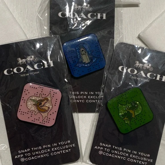 Coach X Snapchat Three Pin Set Limited Edition Rexy Sharky Unicorn Ghost NWT
